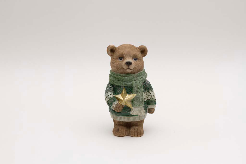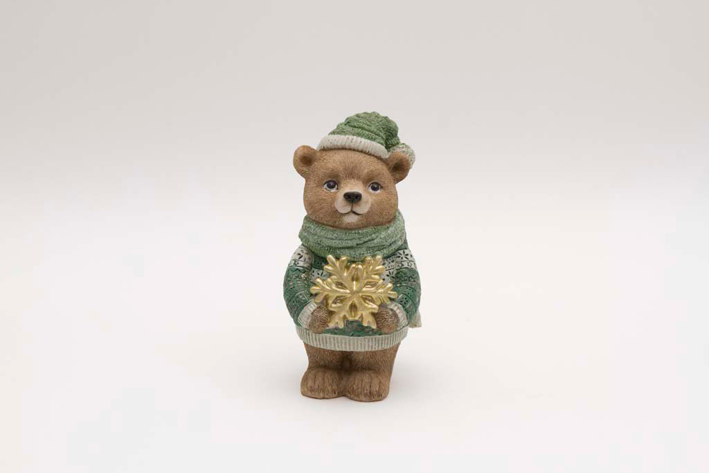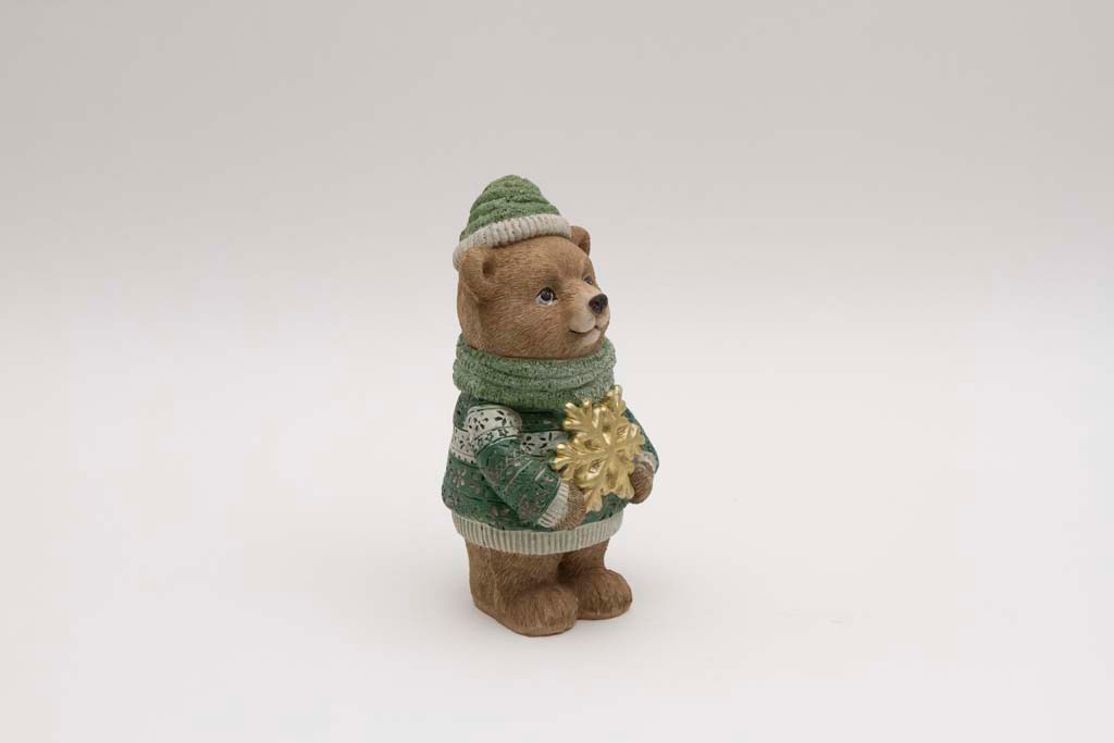 Niedliche Weihnachtsfiguren für eine gemütliche Winteratmosphäre: Diese detailreichen Deko-Bären tragen eine grüne Winterkleidung und halten eine goldene Schneeflocke oder einen goldenen Stern in den Pfoten. Ideal als liebevolle Weihnachtsdeko, für Regale, Fensterbänke oder als Geschenkidee zur Adventszeit. Hochwertig verarbeitet und zeitlos schön – perfekt für moderne und klassische Wohnstile. Jetzt entdecken und winterliche Stimmung nach Hause holen!