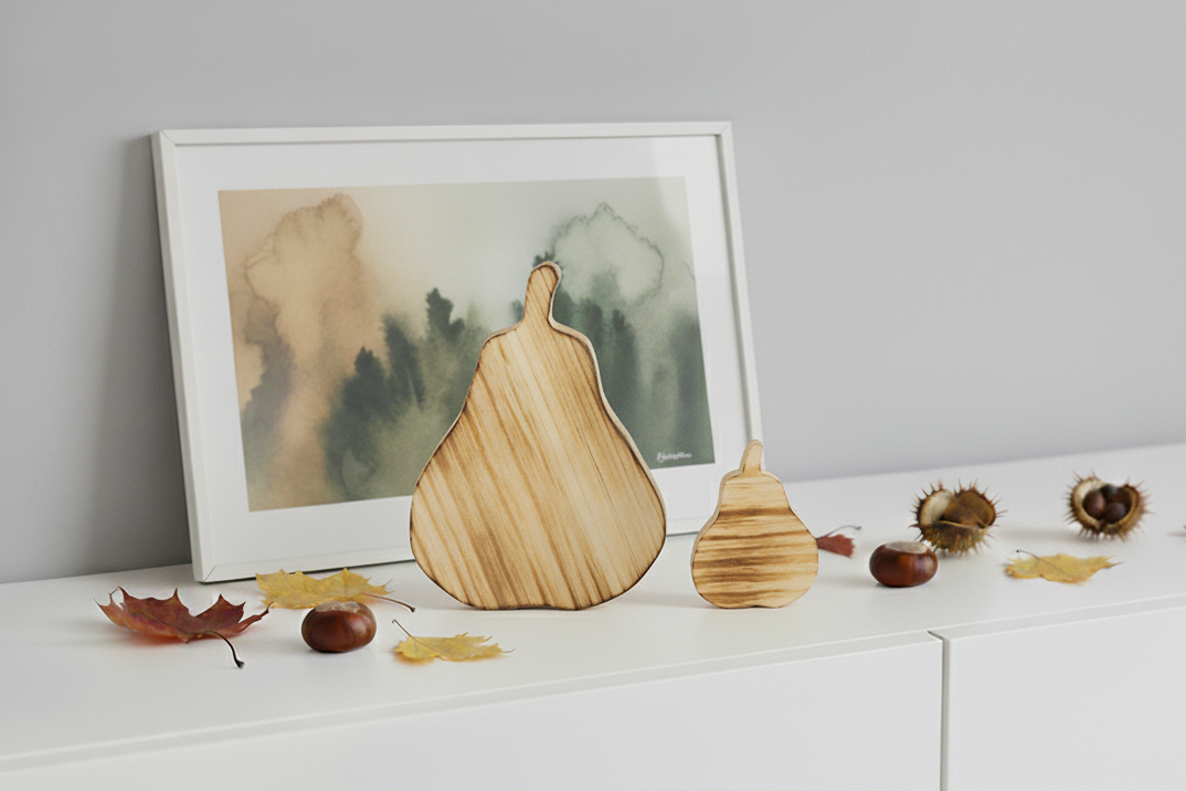 Die Birnenform ist eine wunderschöne Ergänzung für die Herbst- und Winterzeit, die in jedem Raum für eine gemütliche und naturnahe Atmosphäre sorgt. Der Aufsteller eignet sich perfekt als Dekoration für den Tisch, das Regal oder als Akzent auf einer Fensterbank.