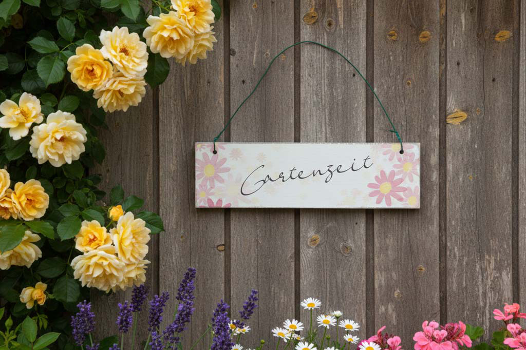 Die Hängedekoration „Gartenzeit“ im Vintage Design verleiht Ihrem Zuhause oder Garten einen charmanten, nostalgischen Touch. Mit viel Liebe zum Detail in Handarbeit gefertigt, ist jedes Stück ein Unikat. Die Dekoration ist mit umweltfreundlichen Farben und Beizen auf Wasserbasis veredelt, die frei von Lösungsmitteln sind, was sie besonders umweltbewusst macht.