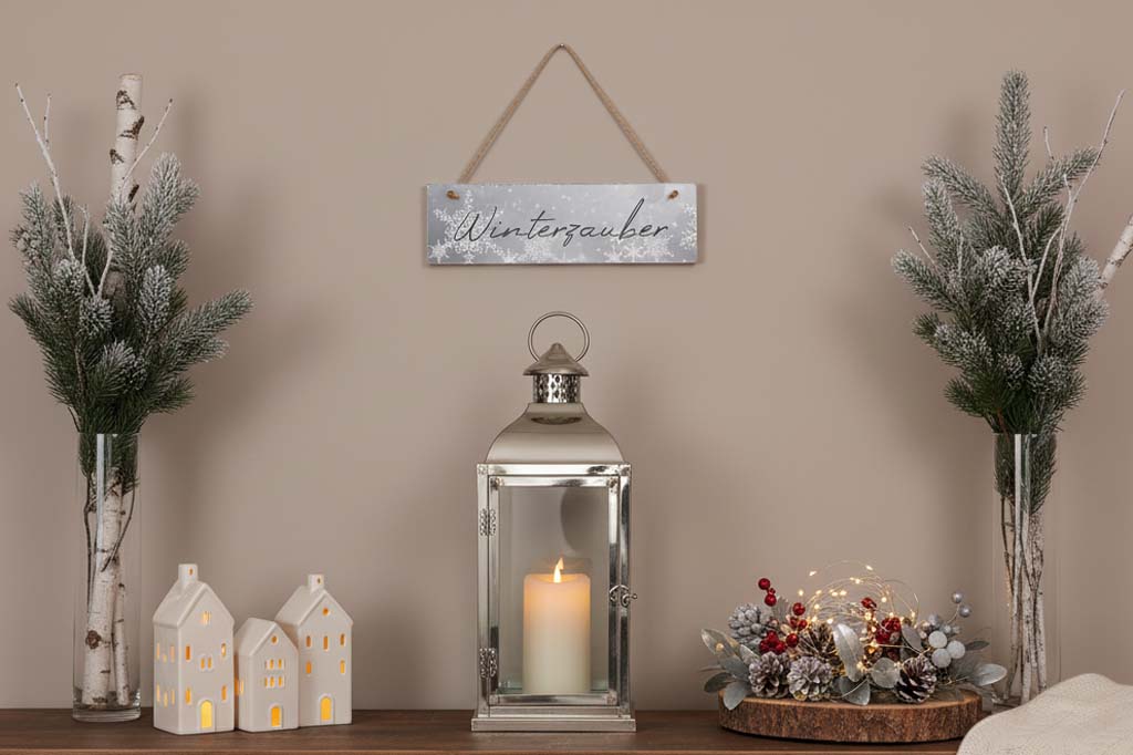 Ob im Innenbereich oder im geschützten Außenbereich – die „Winterzauber“-Dekoration setzt stilvolle Akzente und lässt Ihr Zuhause in festlichem Glanz erstrahlen. Das Vintage-Design und der winterliche Charme machen diese Hängedekoration zu einem wahren Hingucker, der die kalte Jahreszeit auf besondere Weise feiert.