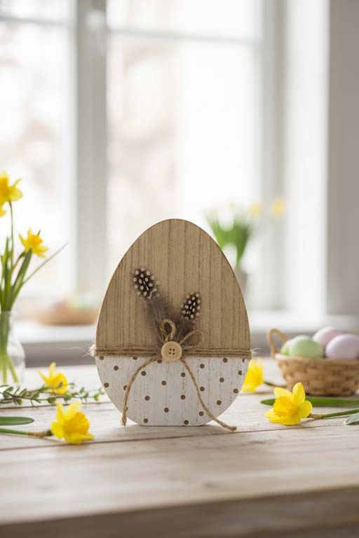 Verleihen Sie Ihrem Osterfest einen Hauch von Natur und Eleganz mit diesem handgemachten Ei aus Holz, das traditionelles Handwerk mit modernem Design vereint. Ein charmantes Stück, das Ihre Osterdekoration bereichern wird – ideal zum Verschenken oder um Ihr Zuhause in fröhlichem Osterflair erstrahlen zu lassen.