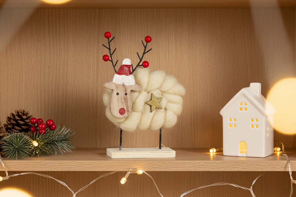 Dieser kleine Elch eignet sich ideal für die Weihnachtsdekoration auf dem Tisch, dem Fensterbrett oder unter dem Weihnachtsbaum. Mit seinem schlichten, aber dennoch liebevollen Design fügt er sich harmonisch in jedes winterliche Arrangement ein und sorgt für eine gemütliche Atmosphäre.