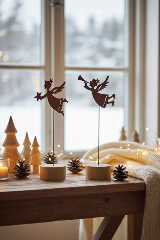 Dieses 2er-Set filigraner Engel aus Metall bringt eine besinnliche, weihnachtliche Stimmung in Ihr Zuhause. Die rustikale Rost-Optik und der natürliche Holzstamm sorgen für einen einzigartigen, dekorativen Blickfang, der sowohl in der Weihnachtszeit als auch das ganze Jahr über bezaubert. Die Engel zeichnen sich durch ihre zarte Ausführung und den charmanten Kontrast aus Metall und Holz aus. Sie eignen sich hervorragend als Dekoration auf Regalen, Fensterbänken oder als kleine Geschenke für Freunde und Familie. Ein besonderes Highlight, das Wärme und Gemütlichkeit in jedes Heim bringt.