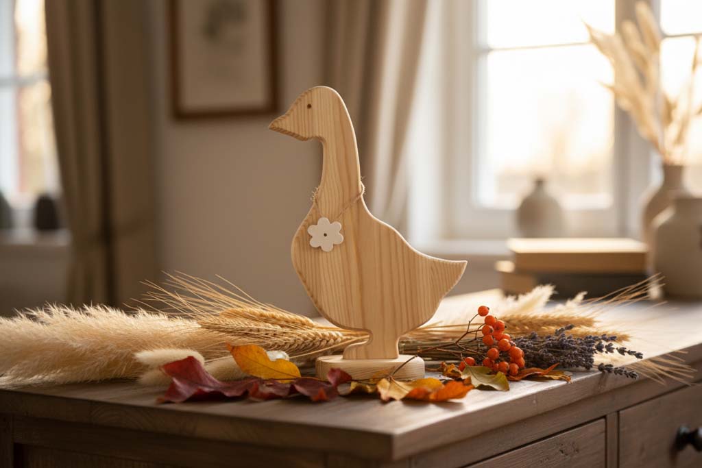 Diese liebevollen Deko-Enten aus massivem, unbehandeltem Kiefernholz sind eine zauberhafte Bereicherung für jedes Zuhause. Mit ihrer natürlichen Holzoptik bringen sie Wärme und Gemütlichkeit in jeden Raum. Die Enten sind mit einer weißen Blume als Anhänger verziert, die einen charmanten Kontrast zur Holzfarbe bildet und die Dekoration besonders festlich und einladend macht. Sie passen perfekt in den Frühling, Sommer oder als süßes Detail für Ihr Zuhause das ganze Jahr über. Ideal für Regale, Tische oder Fensterbänke – diese Deko-Enten lassen sich vielseitig einsetzen und sind auch ein tolles Geschenk für Freunde oder Familie. Ihre schlichte Eleganz und die liebevollen Details machen sie zu einem echten Blickfang.