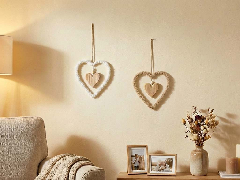 Diese dekorativen Hängeherzen aus Holz im natürlichen Landhausstil sind ein liebevolles Highlight für Fenster, Türen, Wände oder Geschenke. Der herzförmige Rahmen mit weicher Textilumwicklung und das innere Holzherz schaffen eine warme, gemütliche Atmosphäre in jedem Wohnraum. Ideal als Frühlings-, Ganzjahres- oder Geschenkdekoration für besondere Anlässe wie Hochzeit, Valentinstag oder Muttertag. Jetzt entdecken und dein Zuhause stilvoll verschönern!