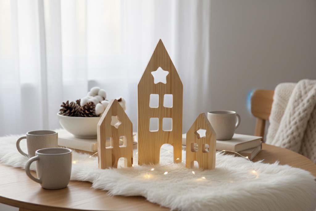 Mit diesem 3er-Set Deko-Häuser aus massivem Kiefernholz gelingt eine schlichte und minimalistische Dekoration, die jedem Raum eine moderne, skandinavische Note verleiht. Die Häuser sind in ihrem natürlichen Holzton gehalten und passen perfekt in jedes Ambiente. Ihre schlichte Eleganz spiegelt den skandinavischen Einrichtungsstil wider und lässt sich vielseitig kombinieren. Ideal zum Aufstellen auf Regalen, Tischen oder Fensterbänken, bringen diese Deko-Häuser Ruhe und Harmonie in Ihr Zuhause – eine perfekte Wahl für Liebhaber klarer, zeitloser Designs.