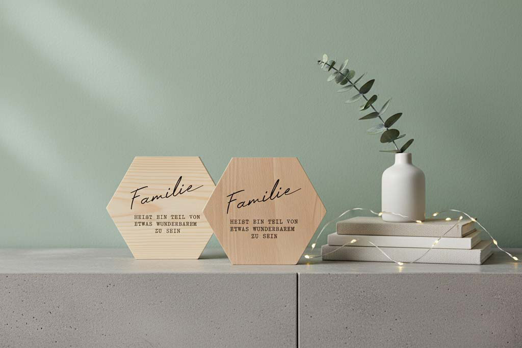 Holzbild Familie Heißt ein Teil 15cm Buche