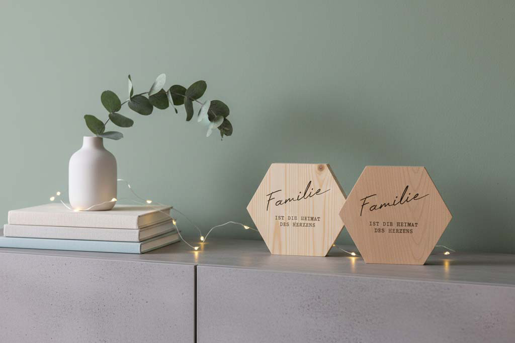 Das Holzbild „Familie“ ist ein elegantes und modernes Dekoelement, das durch seine einzigartige sechseckige Form besticht. Gefertigt aus hochwertigem Holz, ist es sowohl in Kiefern- als auch in Buchenholz erhältlich, sodass Sie das für Ihren Raum passende Material wählen können.
