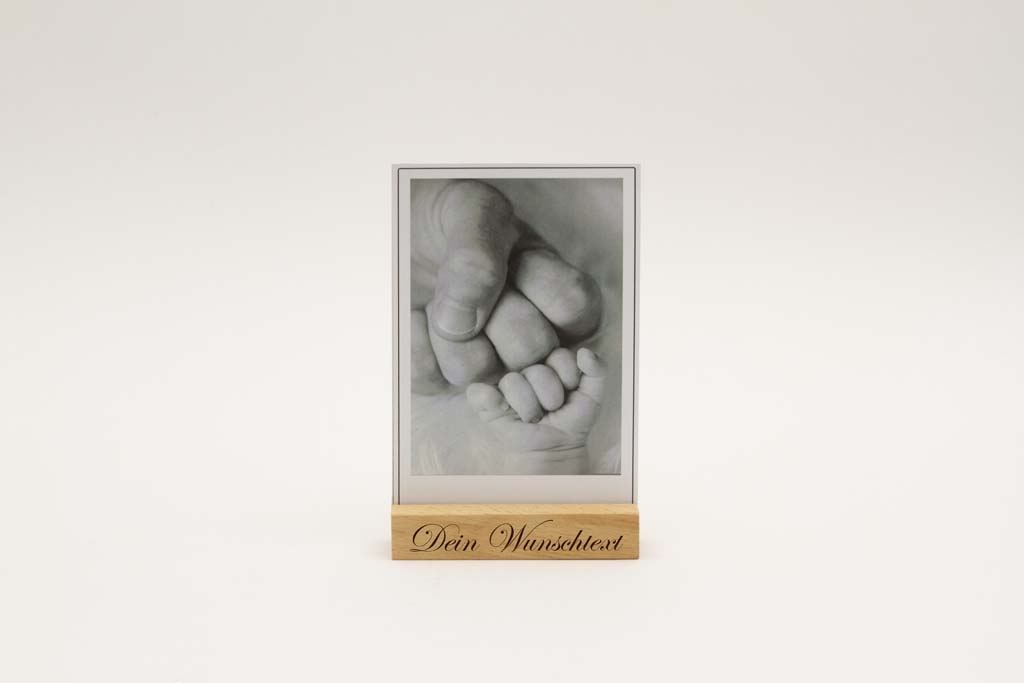 Setze deine Lieblingsfotos, Namenskarten oder kleinen Prints stilvoll in Szene – mit unserem hochwertigen Karten- und Bildhalter aus massivem Buchenholz. Das minimalistische Design fügt sich harmonisch in jede Umgebung ein – ob auf dem Schreibtisch, Regal oder als liebevolle Tischdekoration für Hochzeiten, Geburtstage und andere besondere Anlässe. Mach’s persönlich! Auf Wunsch gravieren wir deinen Wunschtext (bis zu 15 Zeichen) präzise per Laser auf die Vorderseite – z. B. Namen, Datum oder ein kurzes Wort mit Bedeutung. Ein kleines, natürliches Accessoire mit großer Wirkung – perfekt als persönliches Geschenk oder stilvolle Dekoration!