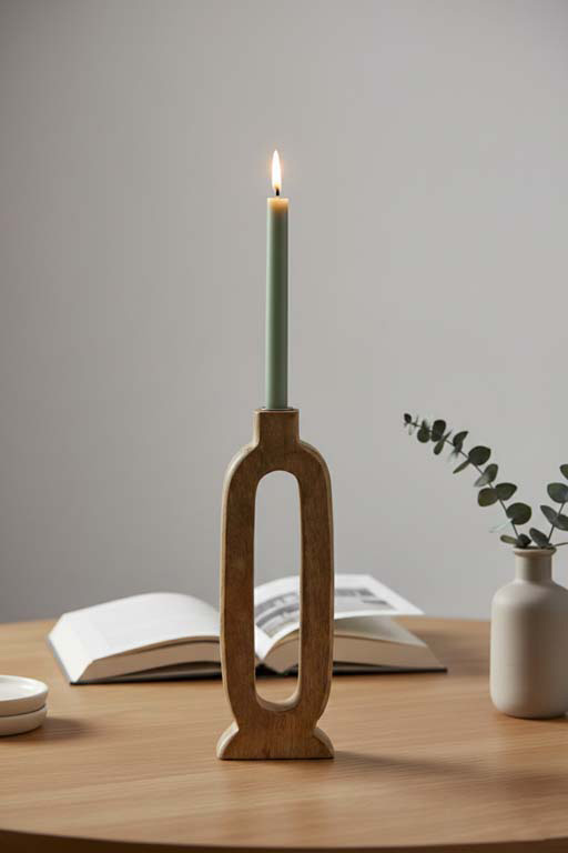 Dieser elegante Kerzenständer aus massivem Mangoholz ist ein stilvoller Blickfang für moderne Wohnräume. Die hohe, schlanke Form mit ovaler Aussparung verleiht dem Design eine zeitlose Leichtigkeit und setzt Stabkerzen wirkungsvoll in Szene. Das naturbelassene Holz mit individueller Maserung sorgt für eine warme, wohnliche Atmosphäre und macht jedes Stück zu einem Unikat. Ideal für Sideboards, Fensterbänke, Regale oder als Tischdekoration im Wohn- und Essbereich. Kombinieren Sie mehrere Kerzenhalter für ein harmonisches Gesamtbild. Jetzt entdecken und Ihr Zuhause stilvoll dekorieren.