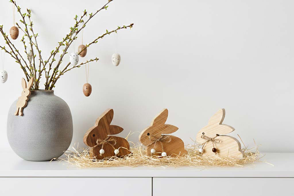 Holen Sie sich den Frühling ins Haus und lassen Sie sich von der schlichten Eleganz der unbehandelten Holz-Osterhasen verzaubern.