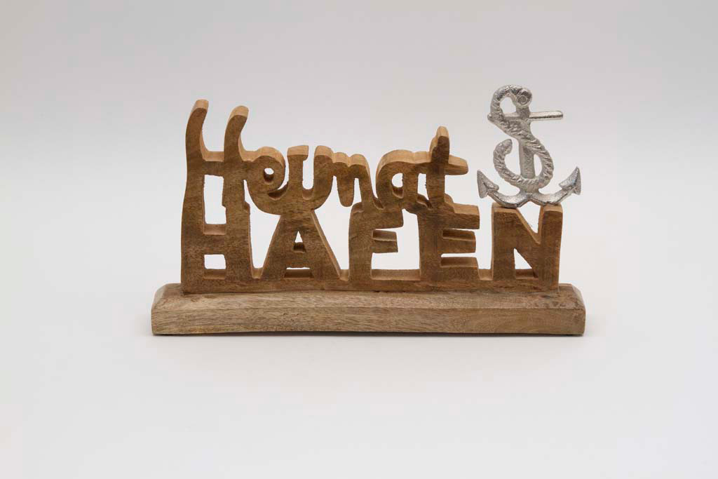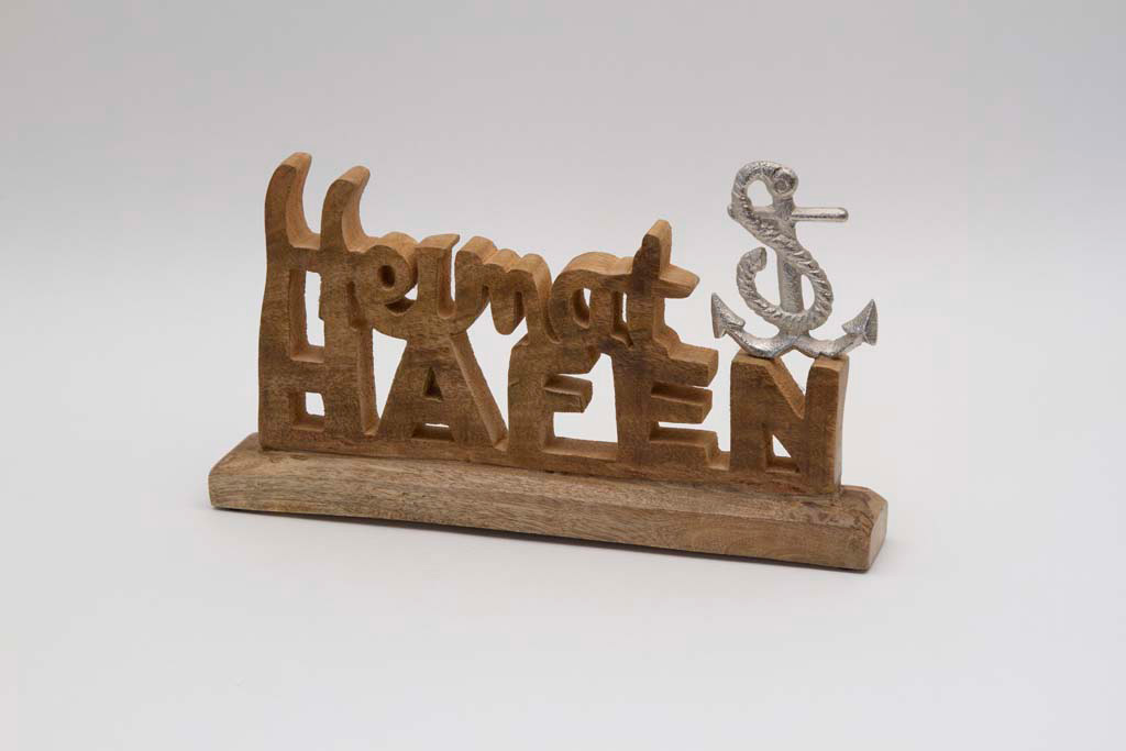 Schriftzug „Heimathafen“ – Maritimer Deko-Schmuck aus hochwertigem Mangoholz und silbernem Anker für ein wohnliches Zuhause. Dieser dekorative Aufsteller bringt nordisches Flair in Ihr Wohnzimmer, Flur oder Regal und schafft eine warme, einladende Atmosphäre mit maritimem Charakter. Das handgearbeitete Mangoholz besticht durch natürliche Maserung, während der detailreiche Metall-Anker edle Akzente setzt. Ideal als Geschenk oder stimmiges Deko-Highlight für Küsten- und Meerfans. Jetzt maritimes Ambiente schaffen und Ihr Zuhause in Ihren persönlichen Heimathafen verwandeln.