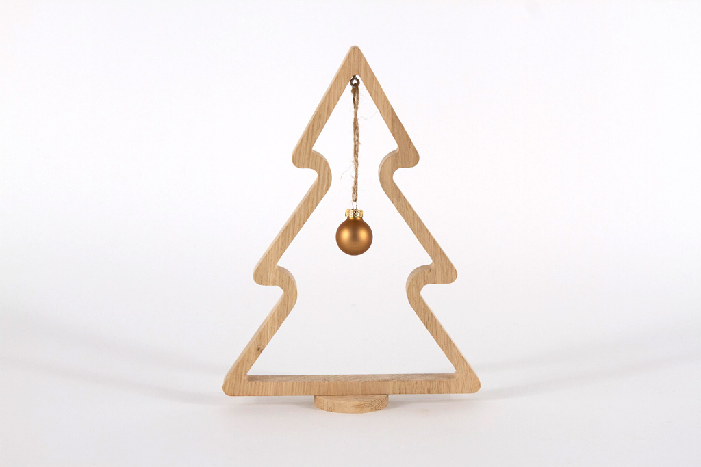 Diese ausgefallene Tannenbaum-Dekoration aus natürlichem Eichenholz ist der perfekte Blickfang für Ihre weihnachtliche Dekoration. Der Baum wird durch eine farbenfrohe Weihnachtskugel ergänzt, die in verschiedenen Farben erhältlich ist und so individuell in Ihre Einrichtung passt. Der runde Fuß sorgt für einen sicheren Stand, sodass die Dekoration sowohl stabil als auch elegant wirkt. Ideal für Regale, Fensterbänke oder als Teil Ihrer festlichen Tischdekoration, bringt dieser Tannenbaum aus Holz eine festliche Atmosphäre in Ihr Zuhause.
