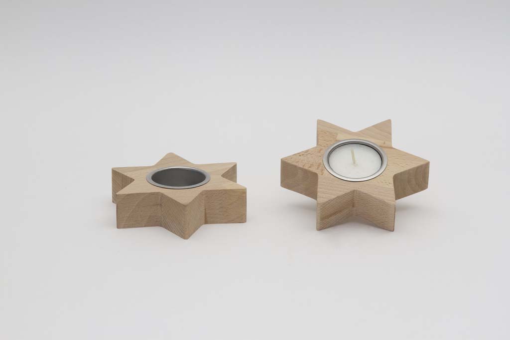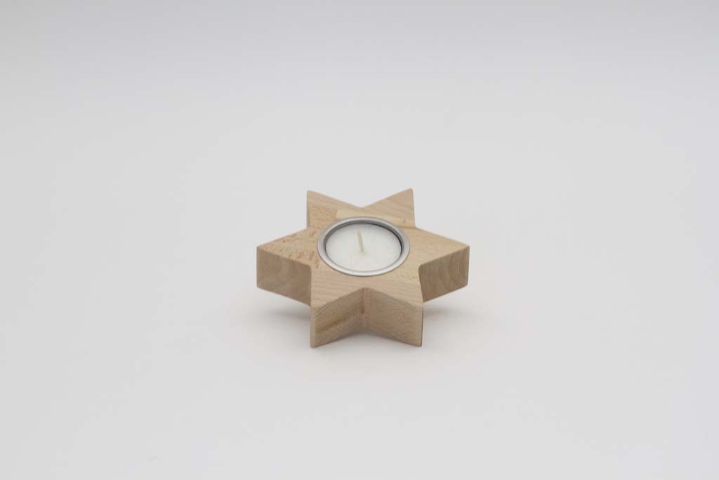 Bringen Sie stimmungsvolles Licht in Ihr Zuhause: Unser dekorativer Kerzenhalter in Sternform vereint natürliches Design mit gemütlicher Atmosphäre. Gefertigt aus hochwertigem Buchenholz, überzeugt er durch seine warme Maserung und langlebige Stabilität.