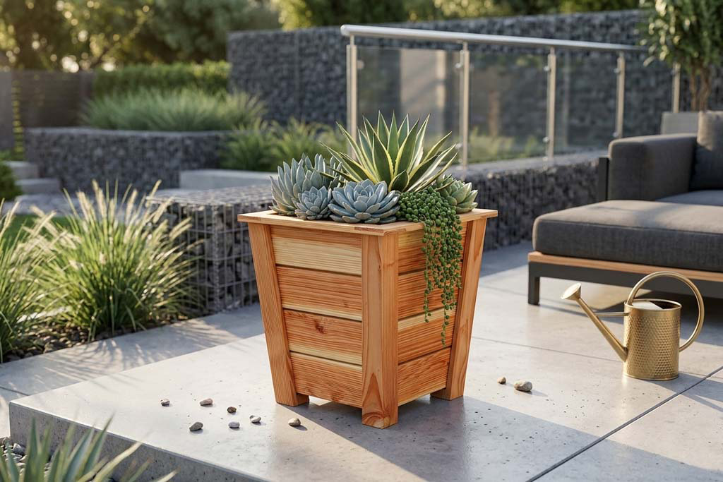 Dieser stilvolle Trapez-Pflanzkübel aus hochwertigem Douglasien-Holz ist eine elegante Bereicherung für Ihren Garten, Balkon oder Innenbereich. Mit seinem modernen Design ohne sichtbare Verschraubungen fügt sich der Kübel harmonisch in jede Umgebung ein und setzt Ihre Pflanzen gekonnt in Szene.