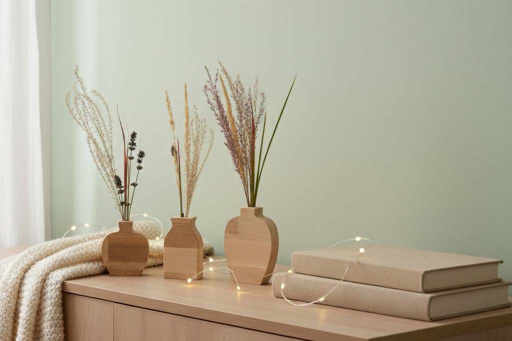 Kombinieren Sie sie mit anderen Deko-Elementen, um ein harmonisches Gesamtbild zu schaffen. Setzen Sie auf zeitlose Schönheit und natürliche Materialien mit unserem 3er Set Trockenblumenvasen aus unbehandeltem Buchenholz. Ideal als Geschenk oder um Ihr eigenes Zuhause zu verschönern – diese Vasen sind ein Must-Have für jeden Liebhaber von nachhaltiger Dekoration!