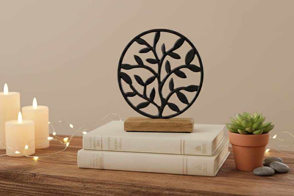 Unser dekorativer Metall-Dekoaufsteller auf einem Holzsockel ist die perfekte Ergänzung für Ihr Zuhause oder Büro. Mit seinem eleganten Design und dem Motiv von Zweigen, verleiht er jedem Raum eine natürliche und stilvolle Note. Der Aufsteller besteht aus hochwertigem Metall in einer schwarzen Farbe, die ihm ein modernes und zeitloses Aussehen verleiht. Bringen Sie mit unserem Metall-Dekoaufsteller mit Zweigmotiv eine natürliche und stilvolle Atmosphäre in Ihr Zuhause oder Büro. Lassen Sie sich von seiner Eleganz und seinem Charme verzaubern und schaffen Sie eine harmonische Umgebung, in der Sie sich wohlfühlen.
